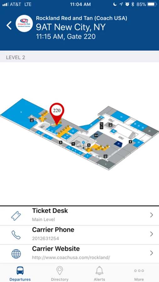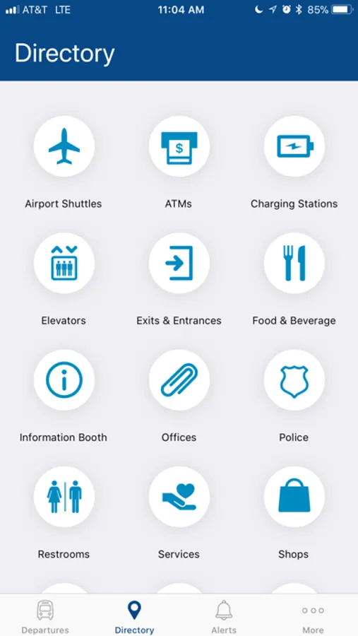 • View directories showing the location of services available at the terminal, including ticketing, shops and restaurants, restrooms, ATMs, and charging stations.