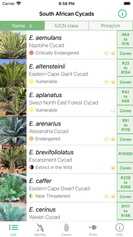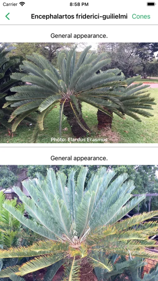 An app about cycads that are indigenous to South Africa.