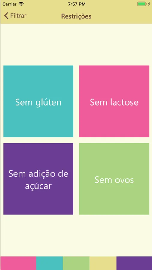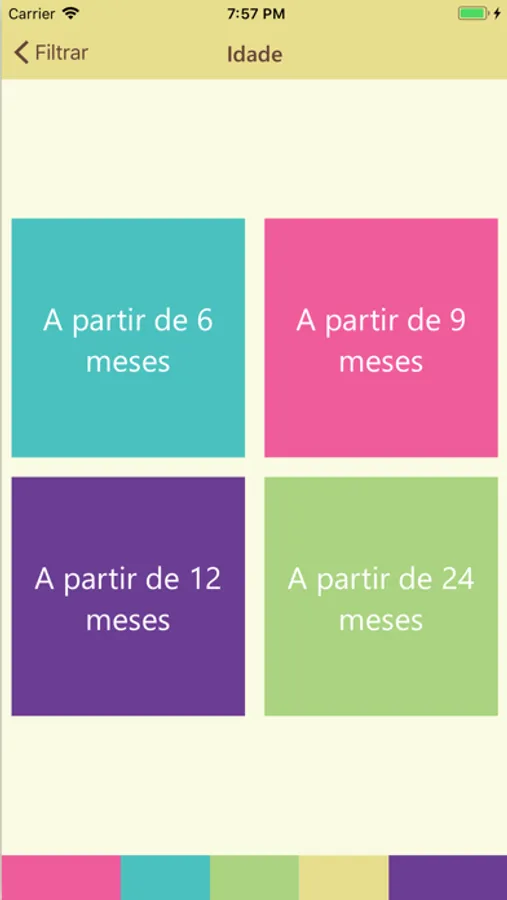 São 28 receitas agrupadas por categorias (Bolos, Pãezinhos, Iogurte Natural Caseiro...), por Idade (a partir de 6, 9, 12 e 24 meses) e por tipo de Restrição Alimentar (sem glúten, sem lactose, sem adição de açúcar e sem ovos).