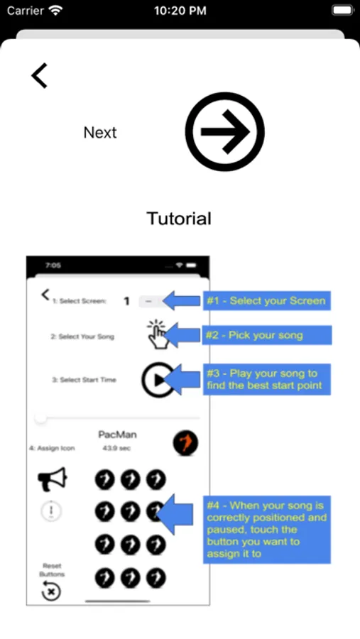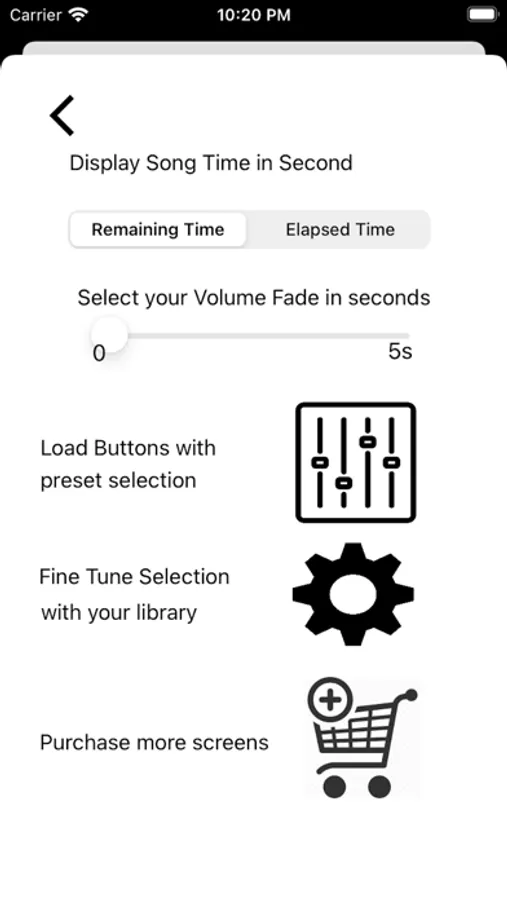 Because some media are copyrighted, they were not included in the app, but a convenient download link is provided for you to acquire and add them to your Music Library. Once on your library, the Config screen will let you select them, set the start time per song and assign it to a specific button. 7 preloaded ambiant songs have been included. You can also use your iTunes Music Subscription to set music to these easy buttons.