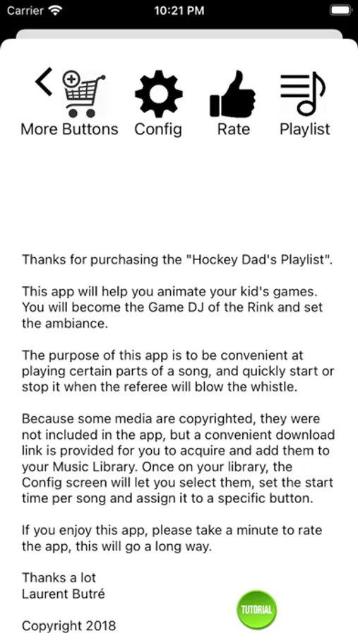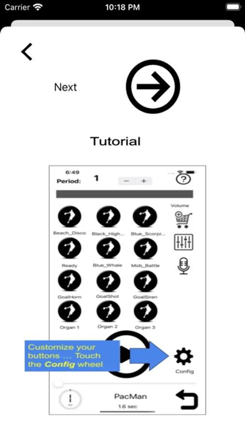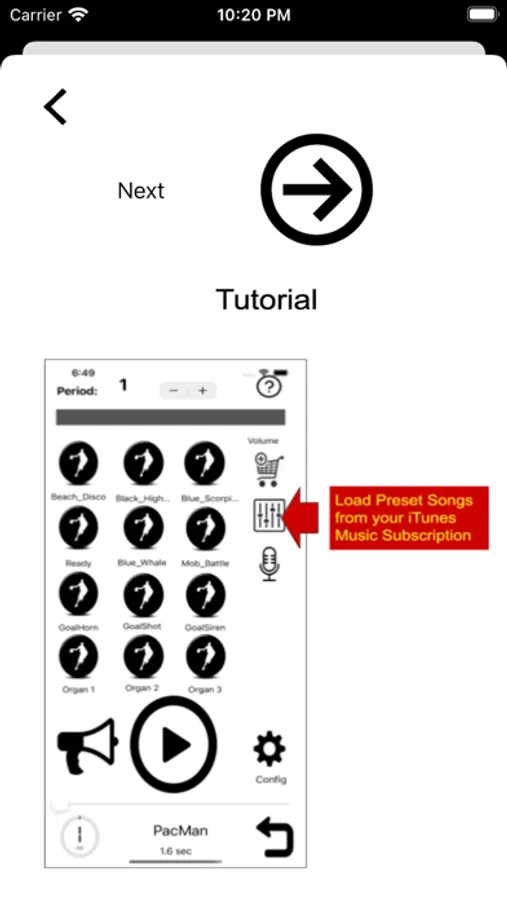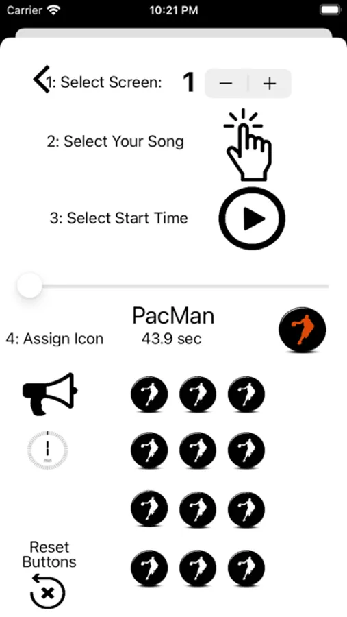 The app comes with 48 customizable buttons. You can set each button of the app to point to a specific music that you own from your iTunes Library. The buttons are conveniently arranged by period of the games and by actions or game phases.