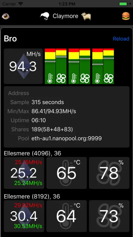 Simple app to display the state of your claymore miners. You can manager a whole sea of rigs or just your single miner.