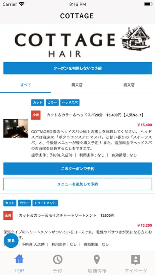 お得なクーポンが配信されます。ネット予約時にクーポン利用での予約も可能なので来店時もスムーズに施術頂けます。