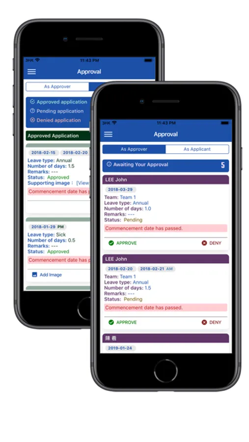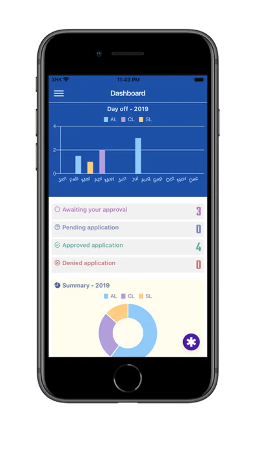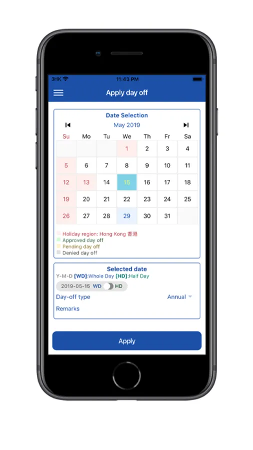 - receive notification (email and push notification) when members apply day off (and if they choose to notify you);