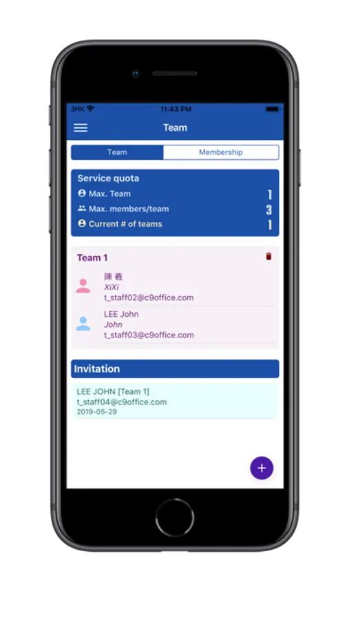 At the same time, you can also collaborate with your team and use the app as your team's day off manager. You can create your own team and invite team members to join. (The maximum number of teams and number of members per team depend on your subscription level, please login at https://www.c9office.com/dayoff and check out Setting > Profile for detail.)