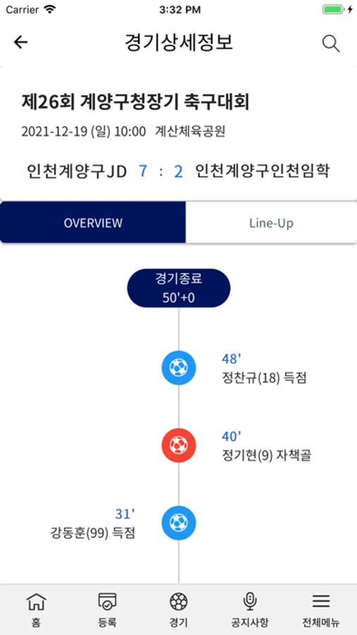 경기와 관련된 모든 절차를 ‘조인KFA 앱’으로 통합했다는데 큰 의미가 있다. 대회 참가신청부터 출전선수 명단 제출, 감독보고서 작성까지 전 과정이 스마트폰으로 가능하다. 예컨대, 참가팀 매니저가 명단을 앱으로 제출하면 경기감독관이 승인하고 경기 결과 보고서까지 앱으로 처리한다. 경기기록은 자동으로 저장되어 데이터베이스화 되는 시스템이다.