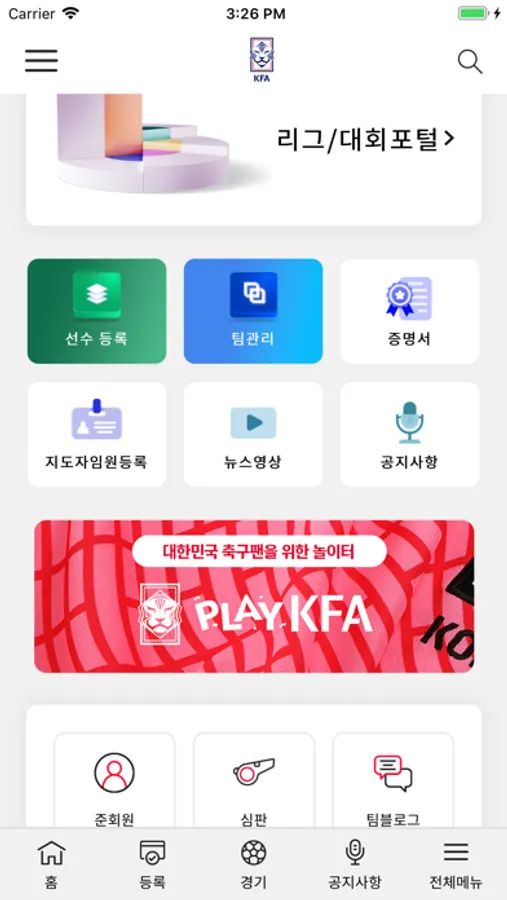 ‘조인KFA 앱’은 국내 축구대회 관리·기록 및 선수등록을 담당하는 어플리케이션으로 현재 PC홈페이지, 종이서류 또는 대면으로 처리하는 각종 축구 행정업무를 스마트폰으로 가능하도록 만든 전용 플랫폼이다.