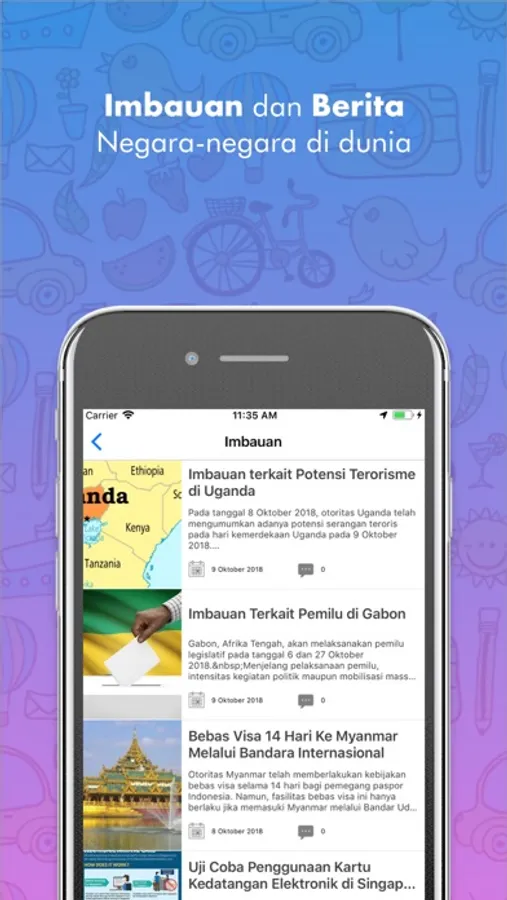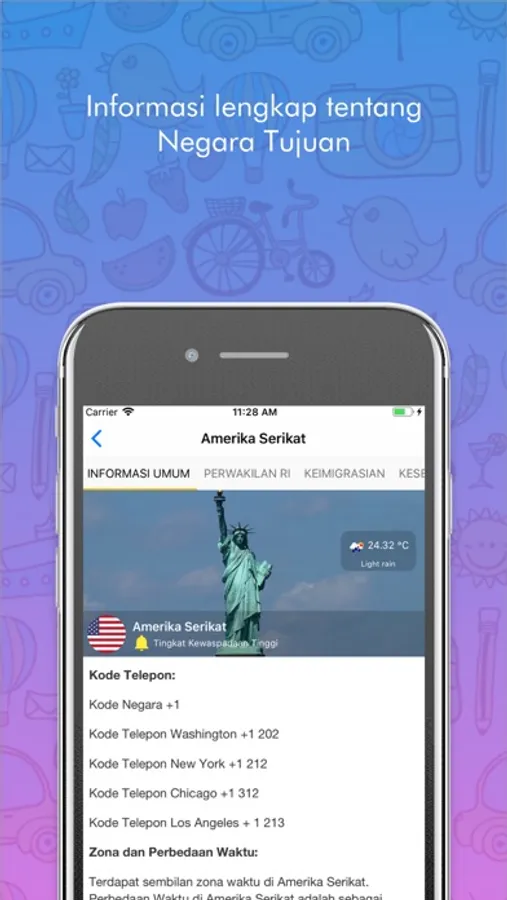 Anda dapat mengakses informasi negara tujuan Anda yang meliputi: perbedaan waktu, kondisi keamanan, hukum dan kebiasaan setempat, persyaratan keimigrasian, kesehatan, pelayanan di KBRI/KJRI/KRI, kuliner Indonesia hingga tempat ibadah.