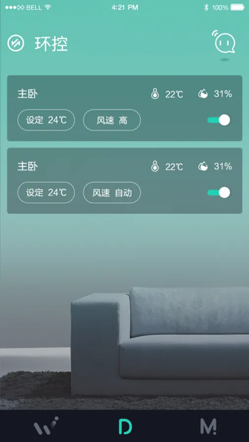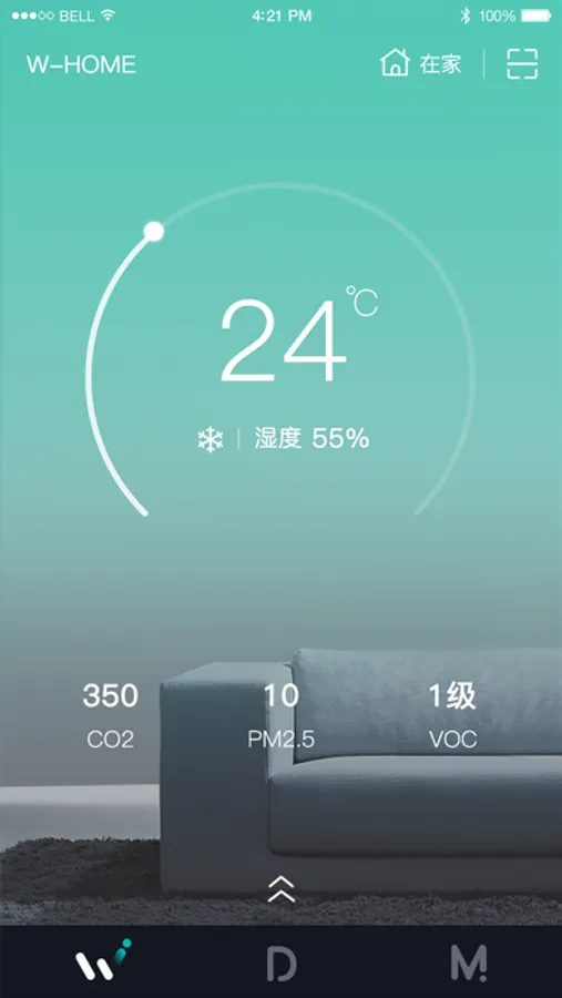 户式环境控制系统让室内全年保持恒温、恒湿、恒氧的疗养级室内气候。通过W-HOME APP可对不同区域的温度、湿度、pm2.5等室内环境数据的进行全天候监测及精准调节,让生活更健康、更舒适。