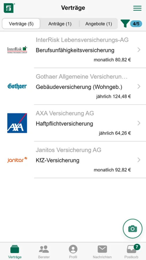Mit FiNSurance haben Sie Ihre wichtigsten Vertragsdaten immer bei sich. Sie haben die Möglichkeit, Ihre Daten unterwegs bequem zu aktualisieren und Änderungen kurzfristig durchzuführen. Somit bleibt Ihnen der Griff zum Telefon oder das Schreiben einer E-Mail oftmals erspart und sollten Sie doch mal Unterstützung benötigen, können Sie sich direkt mit Ihrem Makler in Verbindung setzen, mithilfe der nützlichen Chat-Funktion. Ihre Dokumente stehen Ihnen in der App dabei als handliche PDF-Datei zur Verfügung und Sie können einfach weitere Dokumente scannen und zu Ihren Vertragsunterlagen aufnehmen.