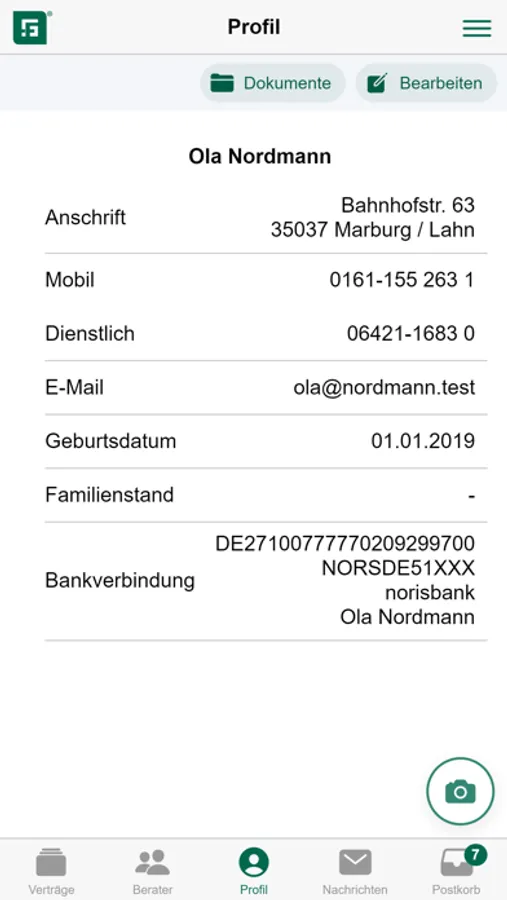 • Aktualisieren Sie Ihre Adress-, Bank und Kommunikationsdaten direkt.
