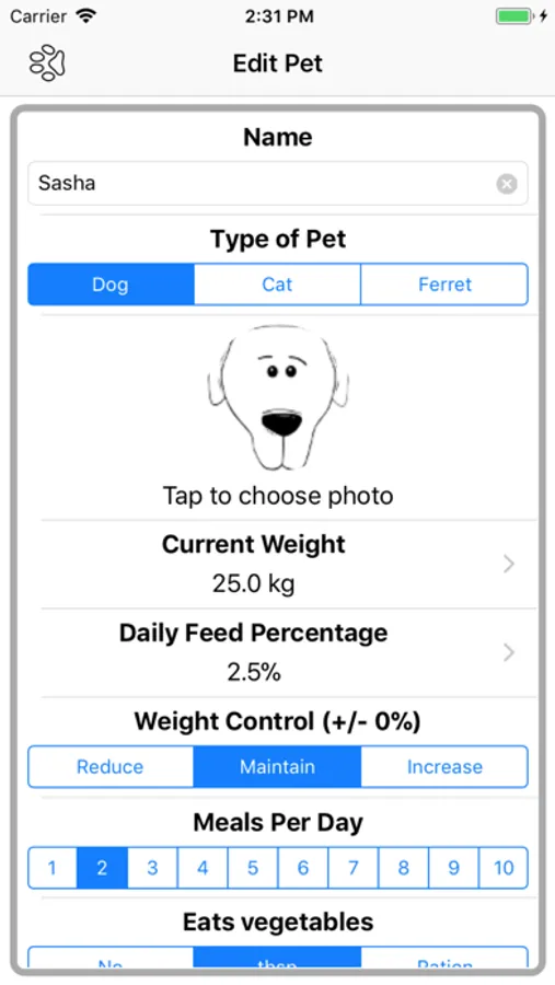 Feeding dogs, cats of ferret a BARF or RAW diet can be daunting, particularly at the beginning. Pet Dinner takes all the guesswork away and gives you the correct proportions of each ingredient for every meal. Pet Dinner adapts to your preferences and will not propose fish or tripe or vegetables or eggs if you don't want it to. If you want to spread the fish or tripe quantities across several days, it can do that too.