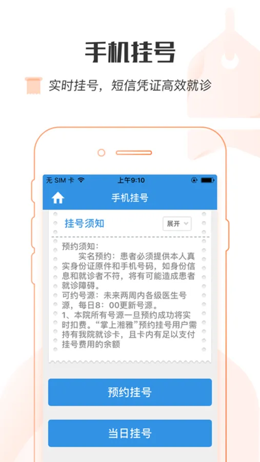 2、预约挂号:掌上实时挂号,短信凭证高效就诊;