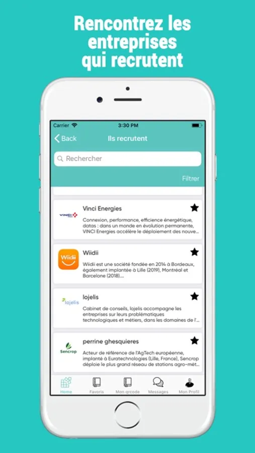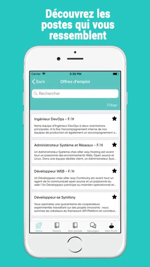 Entrez en contact avec les recruteurs facilement, restez connecté au fil d’actualité twitter, et de toutes les actus de la journée.