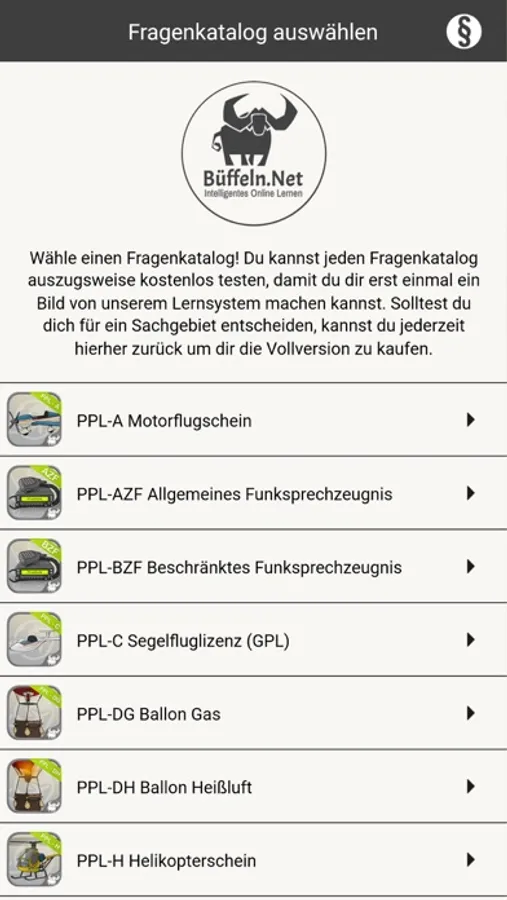 • Synchronisiere deinen Lernerfolg online mit www.Büffeln.Net. Dadurch hast du die Möglichkeit mit mehreren Geräten für deine Prüfung zu lernen, und deinen Lernstand überall mitzunehmen