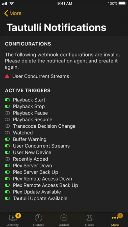 Remote for Tautulli requires an already configured installation of Tautulli v2.1.20 or higher that is connected to your Plex Media Server and reachable from outside your local network.
