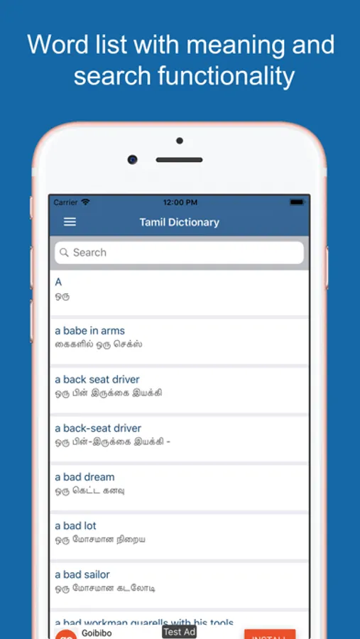 Welcome to Tamil Dictionary and Translator - the easiest way to learn and translate Tamil language fastly within your iPhones and iPads.