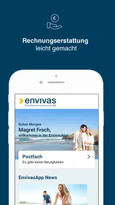 Für die Nutzung der EnvivasApp ist ein bestehender Versicherungsschutz bei der Envivas Krankenversicherung AG notwendig. Voraussetzung für die Nutzung der App ist eine einmalige Registrierung mit Ihrer Versicherungsnummer. Um Dokumente aus der App an die Envivas senden zu können, benötigen Sie eine Internetverbindung (z.B. W-LAN oder mobile Datenverbindung). Die Kosten für die Datenübertragung beim Rechnungsversand richten sich nach den Tarifen Ihres Netz-Anbieters.
