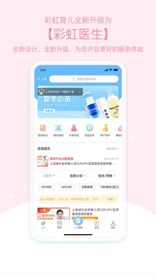一站式互联网+疫苗预约领军者(原名彩虹育儿),为用户提供专业便捷的疫苗咨询,孕产育儿专家答疑,健康商品选购,专家讲座等服务。