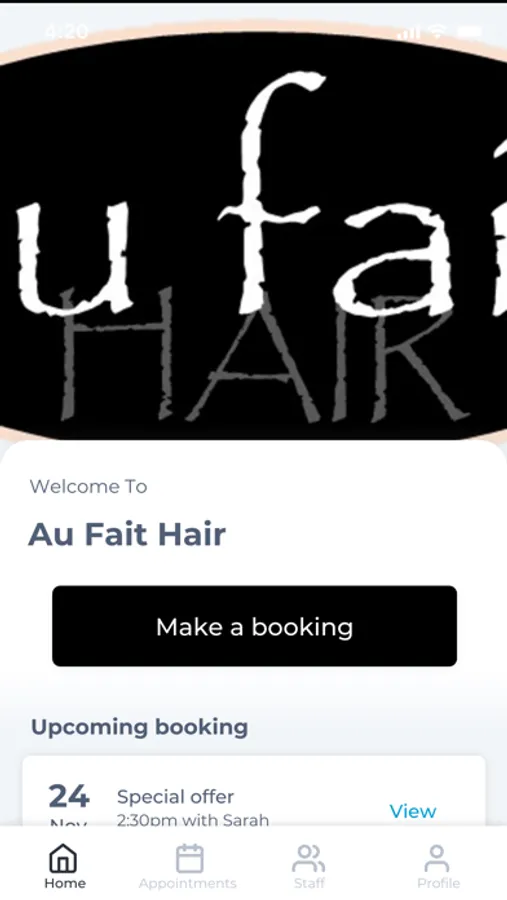 The Au Fait Hair app makes booking your appointments and managing your loyalty points even easier. You're just a few taps away from feeling good and looking great!