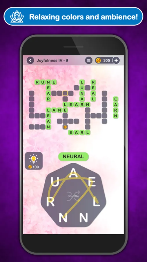 Achieve mindfulness with this soothing word puzzle. Allow your stressors to melt away as you progress from one meditative level to the next. Hypnotic ambience and mesmerizing word play combine in this all new experience from the makers of Letter Soup and Letter Fridge.