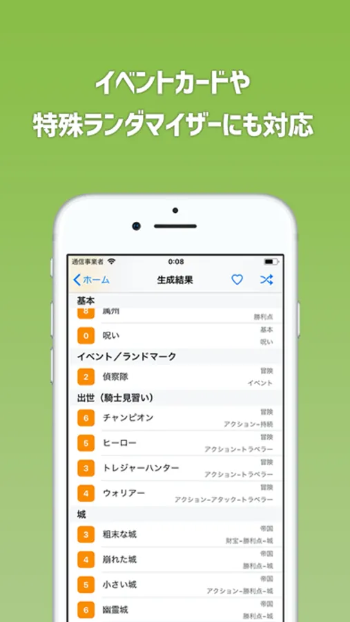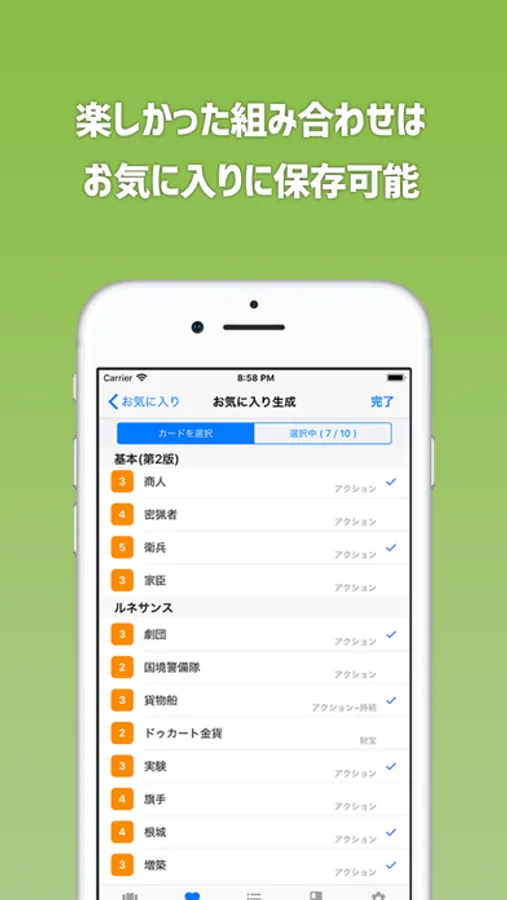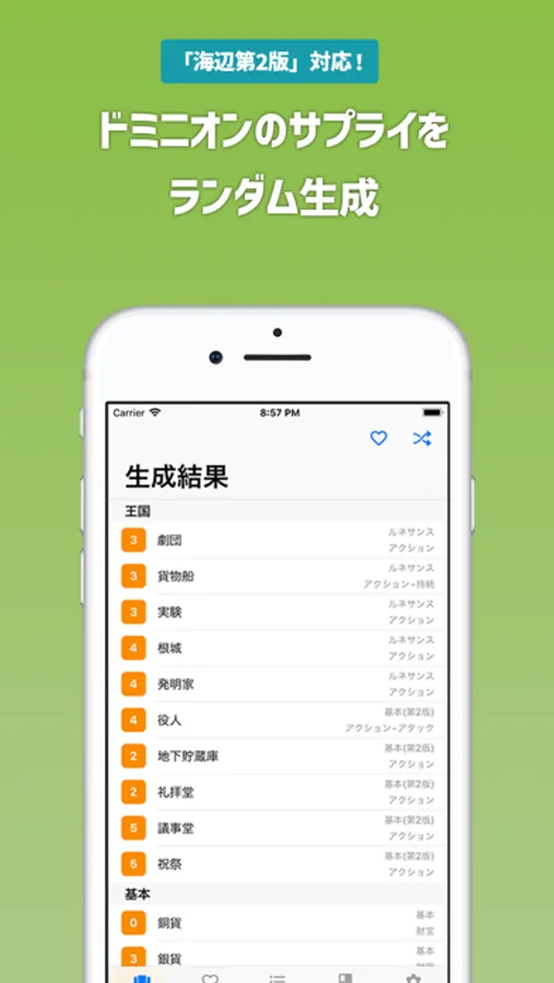 ドミニオンのゲーム中で使用する10枚のサプライを、ランダムで生成することができます。