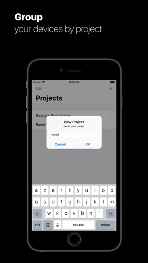 Group your devices by project name to easily retrieve them and keep your workflow clean
