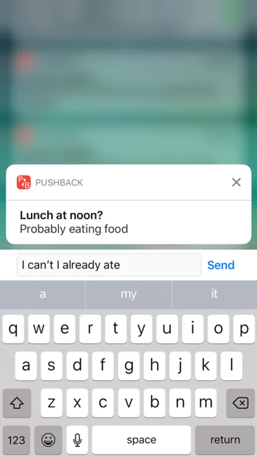 Pushback lets you receive interactive notifications on your iPhone. A notification can have actions, such as buttons or a reply textbox, which allows you to interact with your servers, scripts, applications, etc., without even opening the app.