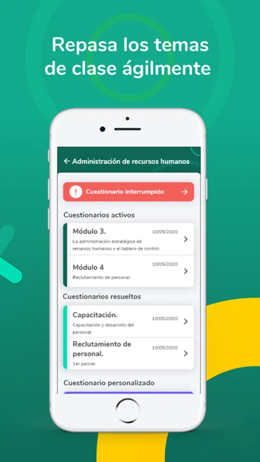 Applicados 21 permite responder cuestionarios para chequear lo aprendido en formato de autoevaluación con el complemento de saber cómo es tu rendimiento en relación a los de tus compañeros.