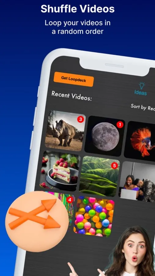 Loop videos easily to be displayed on your device or casted to an external device. Perfect for trade-shows, presentations, events, parties and more.