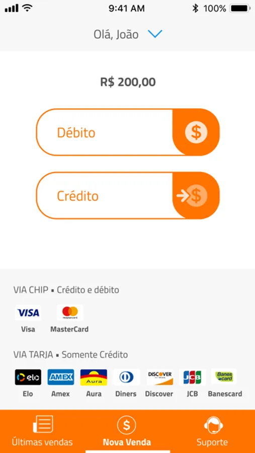 Funciona com cartões de Chip e Senha, cartões de tarja magnética, carteiras digitais e outros tipos de pagamentos eletrônicos.