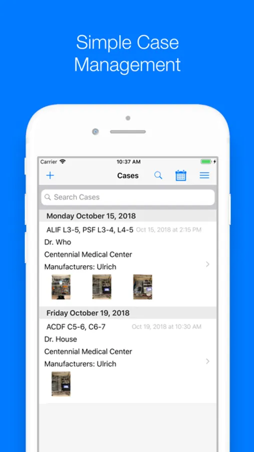 - Simple case tracking system that allows you to track surgeons, surgical trays, surgery times, instrument sets, images, and more.
