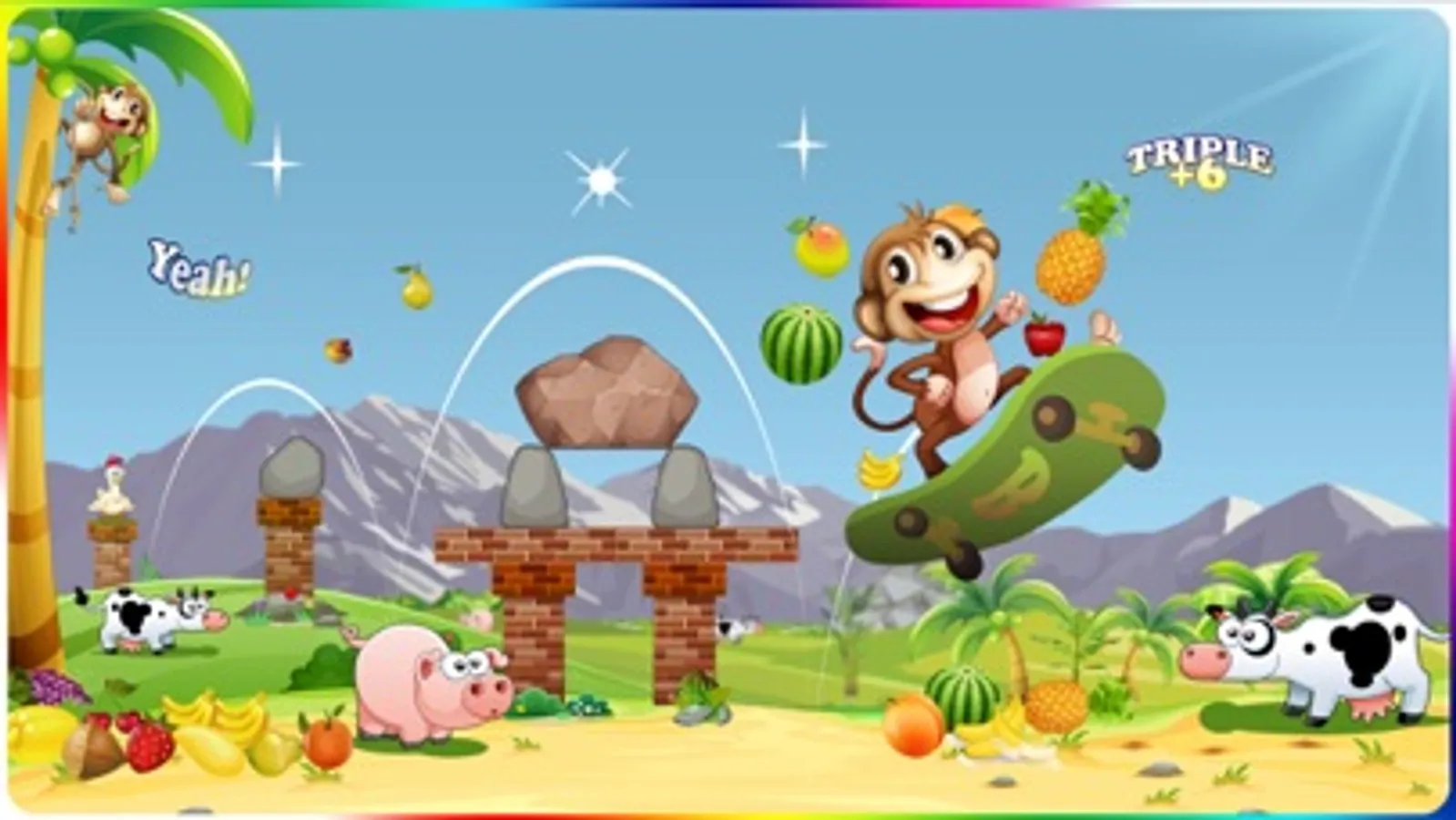 + Obstacles will appears under fruits. But don't worry, you just jump to void them.