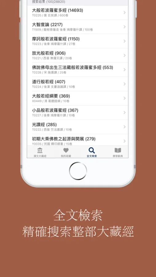 - 離線訪問全部 4600部 / 20000卷 漢文佛經,共2億字。