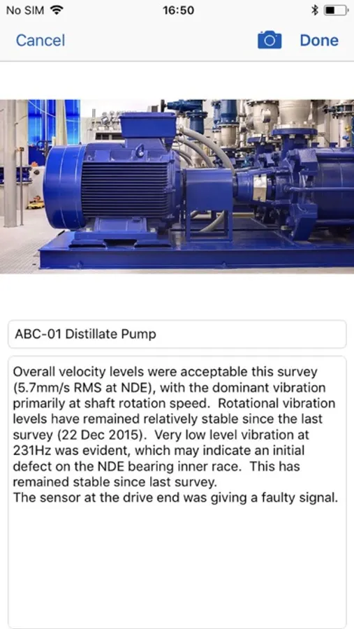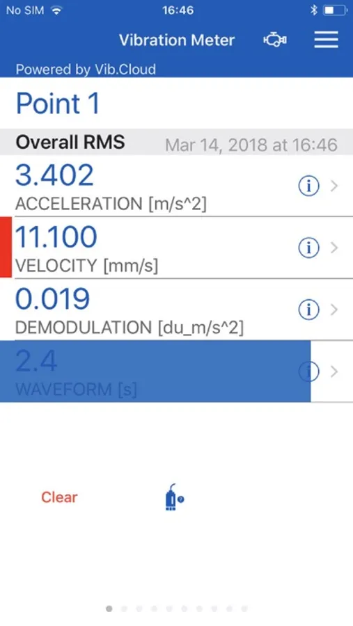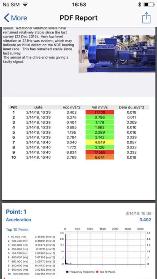 VibeCheck is an overall vibration meter based on Digiducer sensor (333D01 USB Digital Accelerometer). Calculates overall acceleration, velocity and demodulation values. Offers option to take picture of the machine, save notes and performs ISO assessment simultaneously during data collection - assess velocity values against ISO10860 standard. Ability to email simple report from the mobile device.
