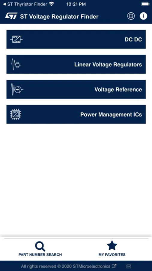 Developers can use this app's parametric search engine or custom browser to quickly identify the ST products (linear regulators, high-performance LDOs, voltage references, and other power management ICs) that best fit their application. The main features and technical characteristics of selected products are clearly displayed and it is possible to download the complete datasheet. In just a few clicks, you can check product availability and order samples. You can also share related documentation by email or social media.