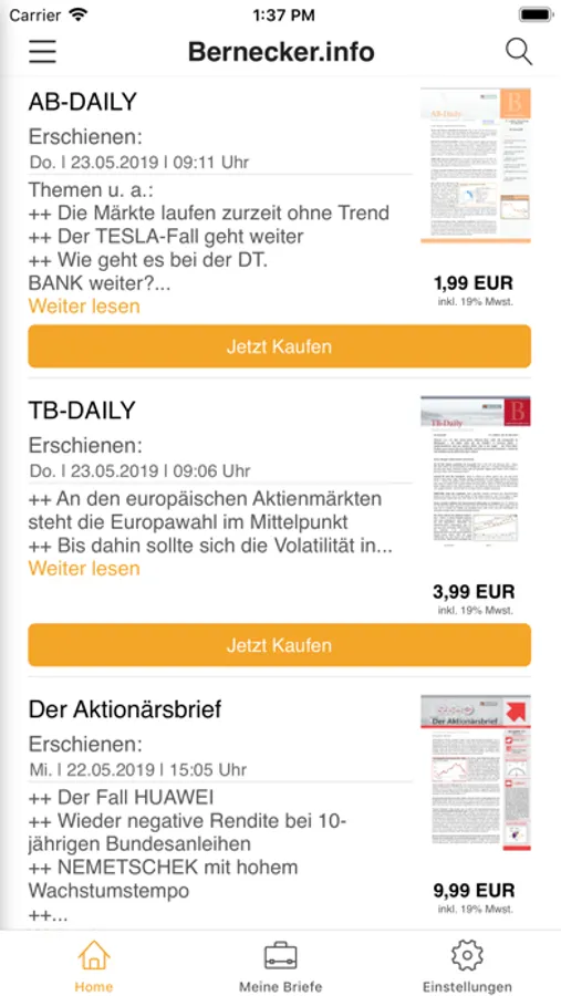 - Einzelkauf: All unsere Briefe können dort als PDF gekauft werden