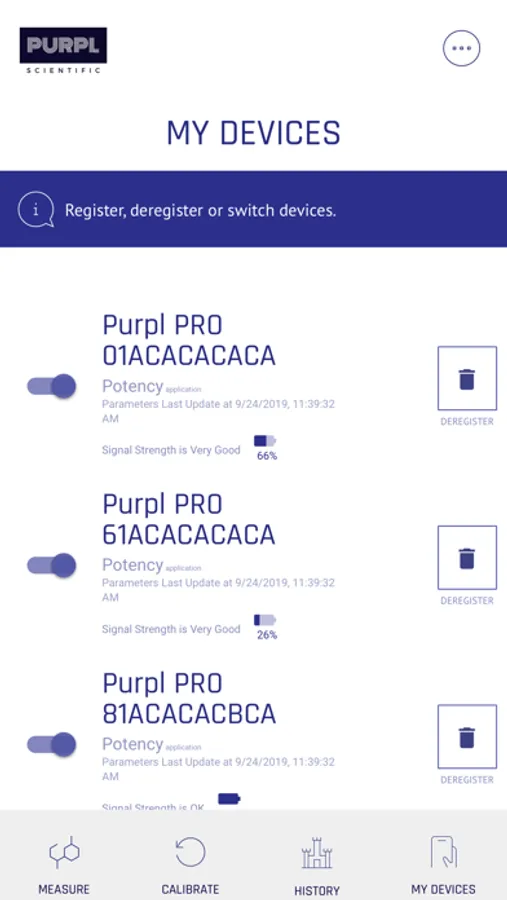 Our products reduce the mystery and guesswork of cannabis quality and chemical composition throughout the complete lifecycle, from cultivation to consumption. With your smartphone and a pocket-sized PurplPRO Bench, you get an immediate analysis of the potency of your cannabis sample, and can save the measurement to the cloud. Real-time potency measurement is now a reality, Go PurplPRO!