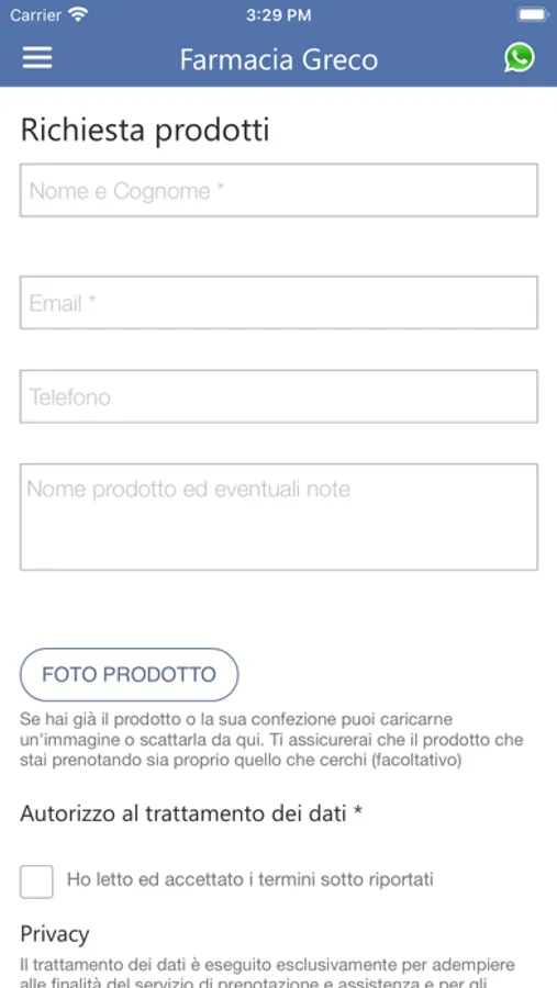- Richiesta e prenotazione prodotti, anche mediante l'invio di immagini
