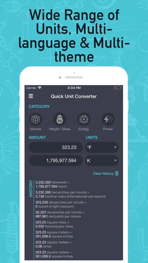 • History of your latest conversions so you can view them instantly without needing to recalculate every time.