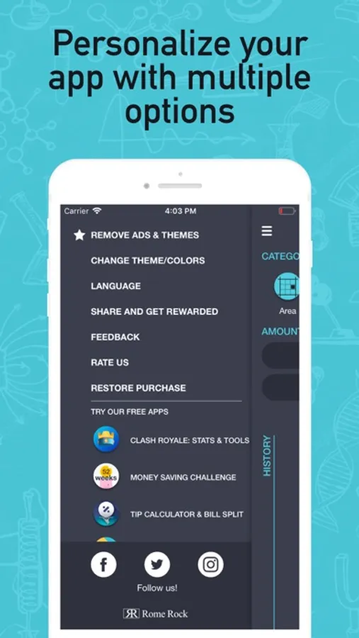 • The app is Multi-language, so you will get the correct unit name based on your language, either using the option or manually changing it.