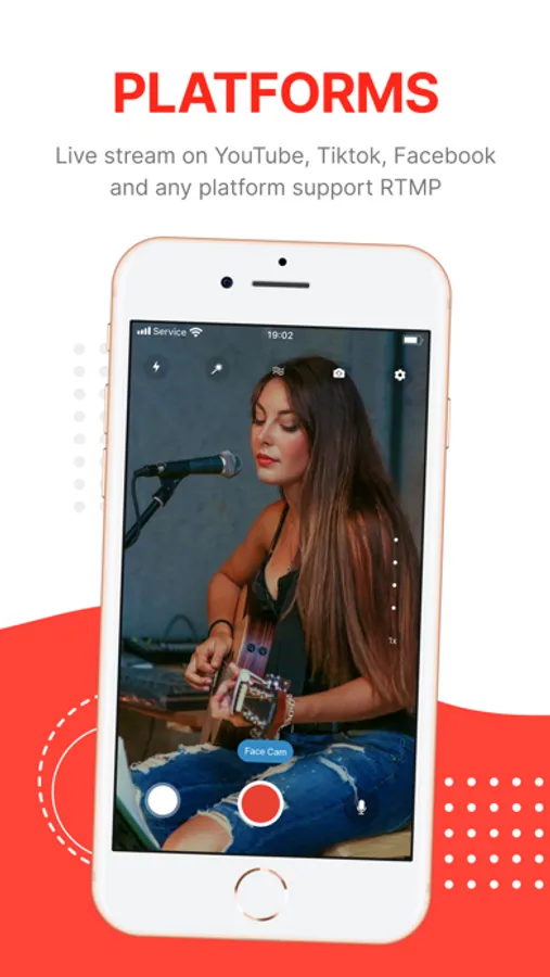 • Streams to Facebook Live, YouTube Live, Twitch and many other services capable of receiving RTMP(S)