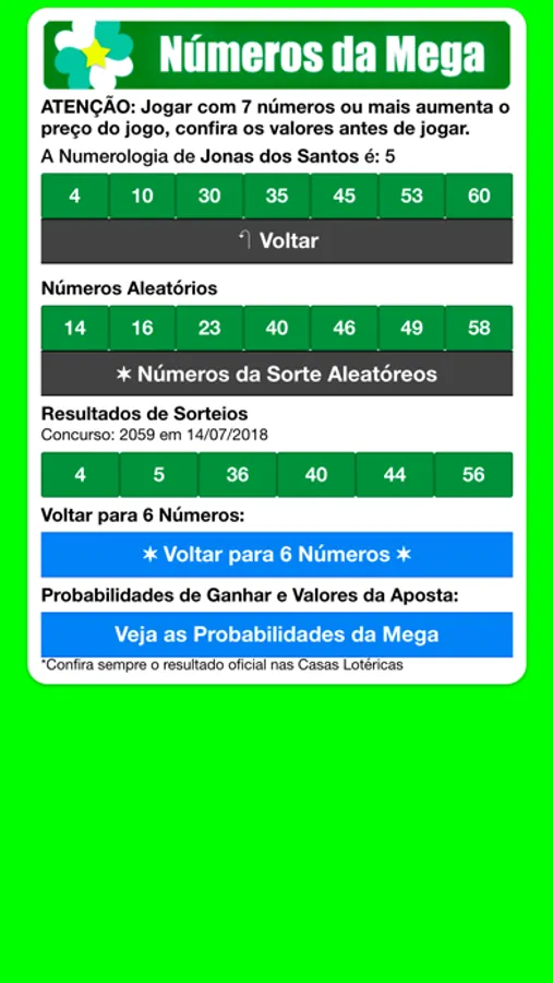 Coloque o nome e veja os números da sorte através da combinação numerológica do dia com o nome.