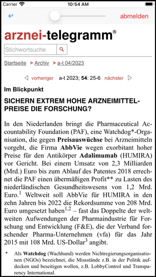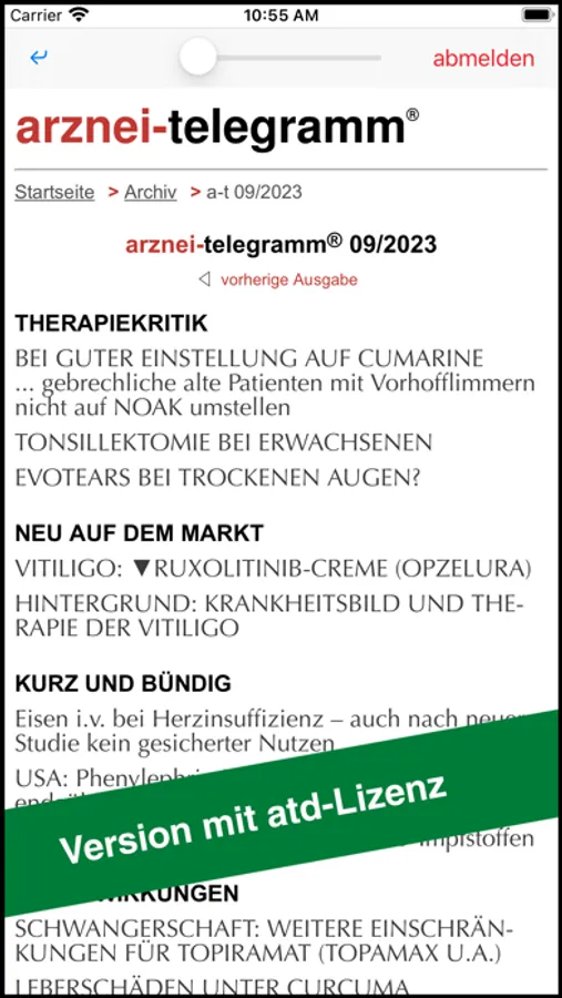 Nichtabonnenten können alle Ausgaben des arznei-telegramm® außer den drei aktuellen Jahrgängen einsehen, aus denen aber ausgewählte Artikel frei zugänglich sind.