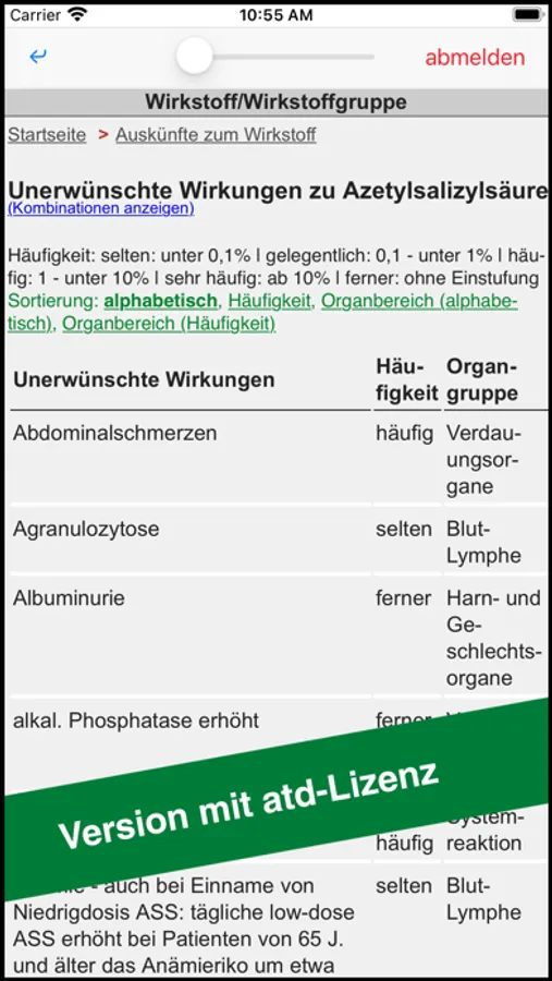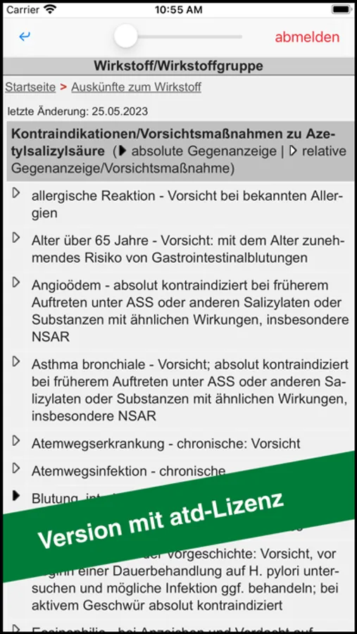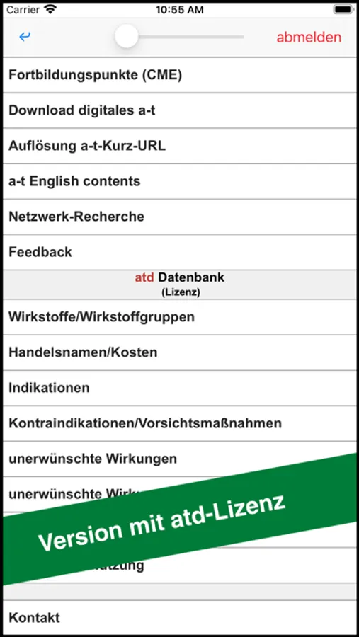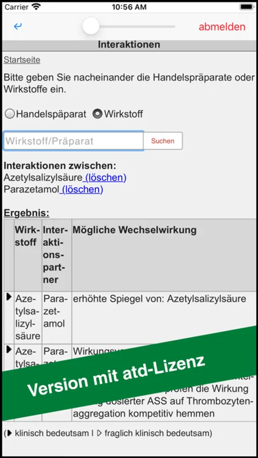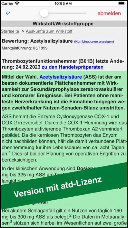 Die atd-Arzneimitteldatenbank (zusätzliche Lizenz erforderlich) bewertet detailliert mehr als 2.000 Wirkstoffe und damit rund 18.000 Arzneimittel. Sie nennt deren Preise, Indikationen, Gegenanzeigen, Nebenwirkungen, Interaktionen und Pharmakokinetik und verlinkt zu über 16.000 weiterführenden Quellen. Die Arzneimitteldatenbank wird monatlich aktualisiert und ergänzt, beispielsweise um neue Medikamente.