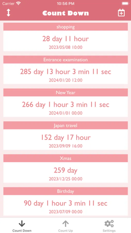 We have made a timer application that can count up and count down various anniversaries.