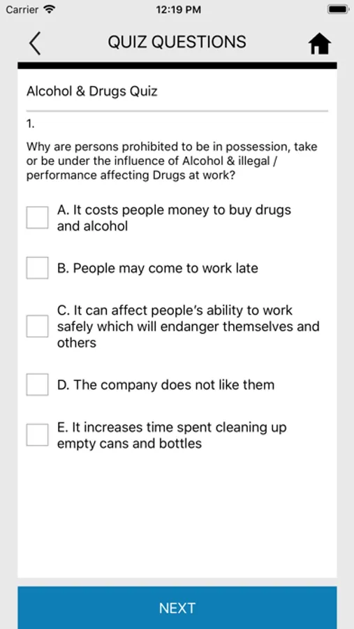 3. “Quiz” functionality with calculated score – linked to 12 basics or other subjects