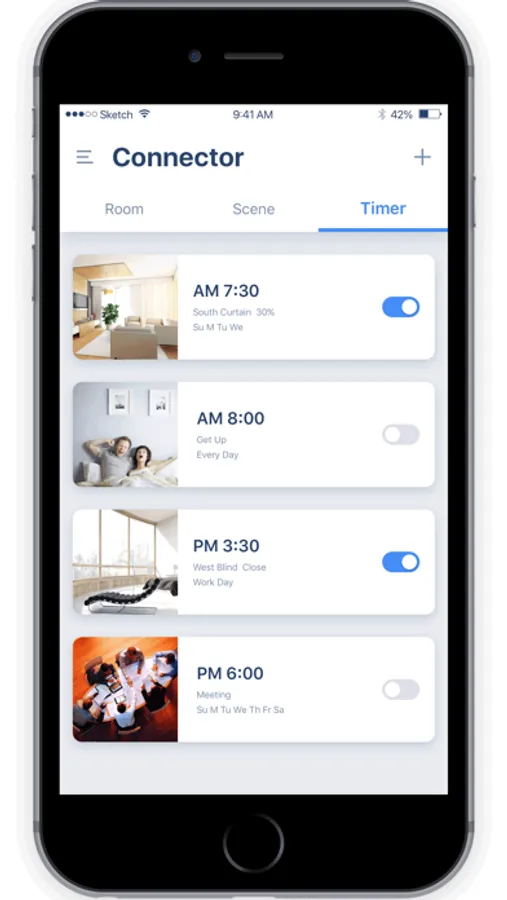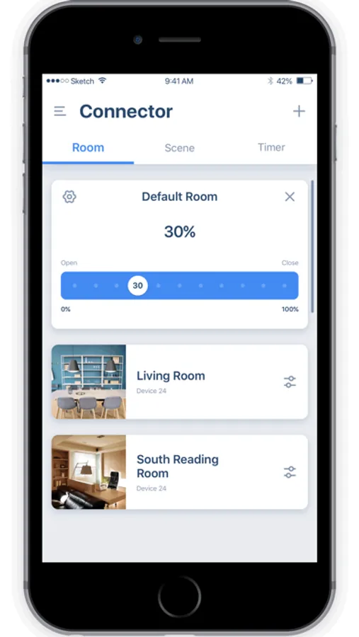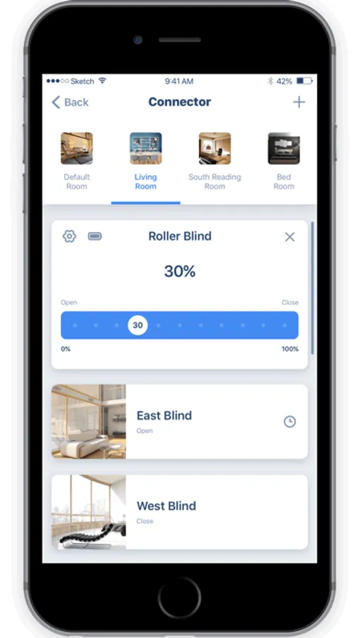 'Connector' app allow you to control your motorized window coverings more freely on smartphone. Please configure your 'Connector' APP account, Bridge and motorized window coverings on 'Connector' APP before use.