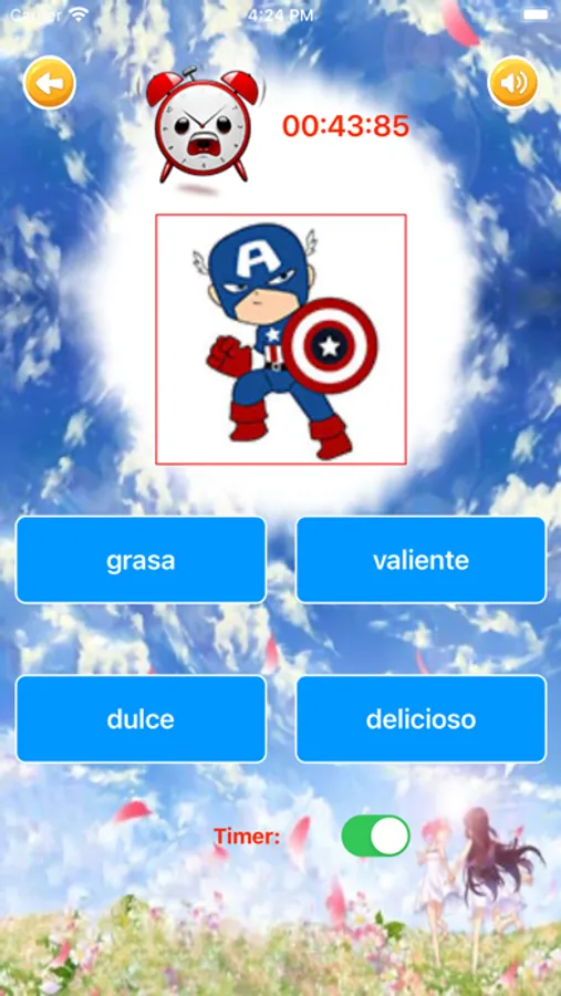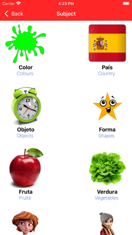 So, Learn Spanish for beginner has 4 fun game. In game, beginner can practice phonics Spanish, help beginner remember vocabulary better. One word will be automatically pronounced, beginner have to listen what is it, then choose true image by touching screen.