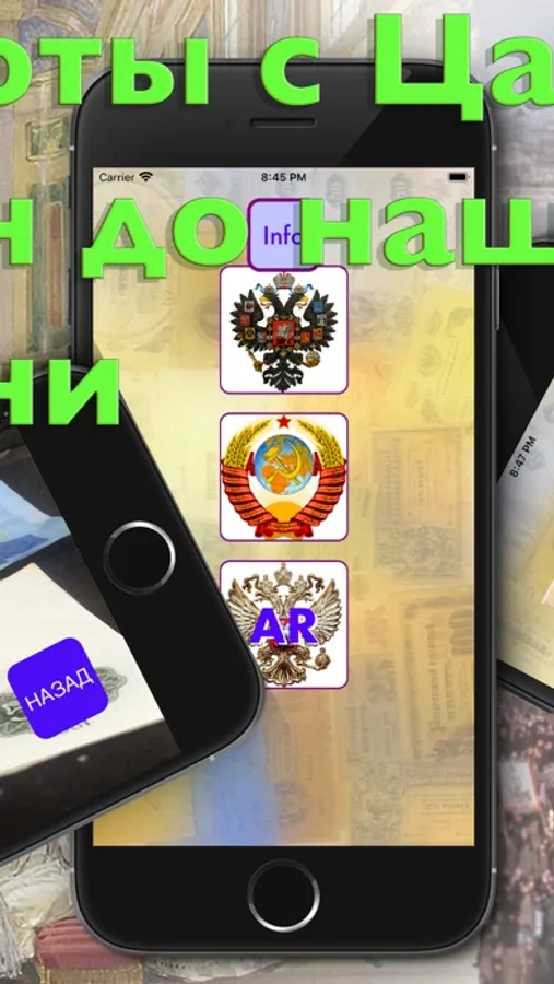 В качестве таргетов используются банкноты Российской Федерации, если у Вас не оказалось рядом купюры необходимого номинала, то Вы всегда можете использовать изображения с сайта поддержки: https://izyapp.ru/ios/banknotesrf/.